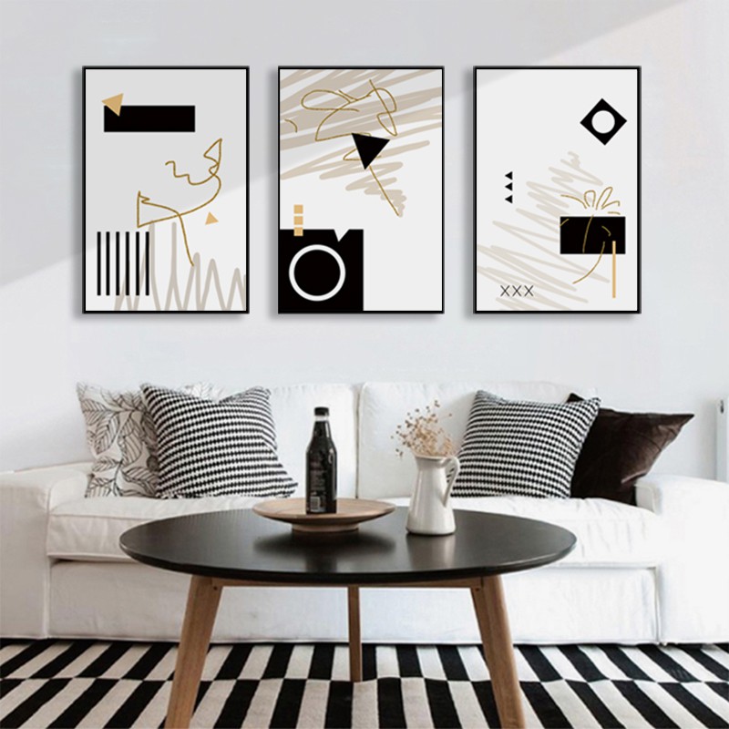 Black And White Abstract Wall Art Canvas Painting Modern Minimalist Posters And Prints Wall Pictures For Living Room Home Decor Shopee Malaysia