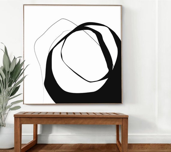 Black And White Abstract Wall Art Print Contemporary Minimal Etsy