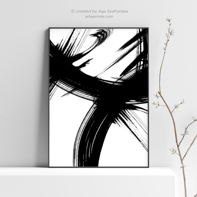 Abstract Art Print Black White Abstract Painting Minimalist Etsy