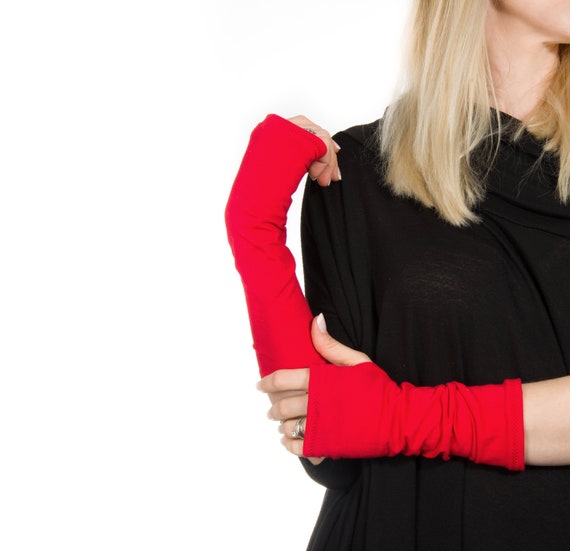 Red Fingerless Gloves Women Long Arm Warmers Red Gloves Wrist Etsy