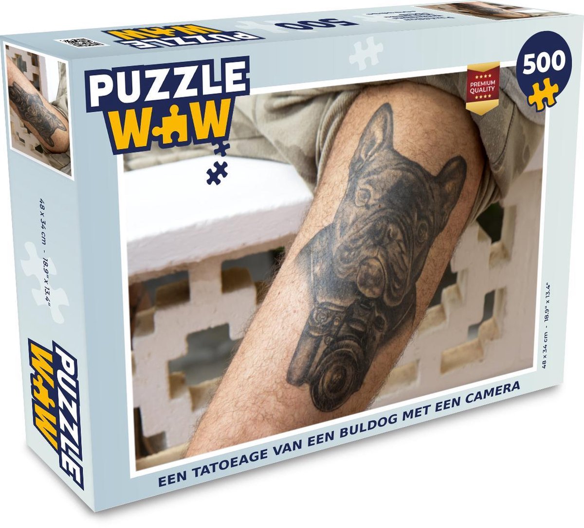 Bol Com Puzzel Tattoo 500 Stukjes Een Tatoeage Van Een Buldog Met Een Camera