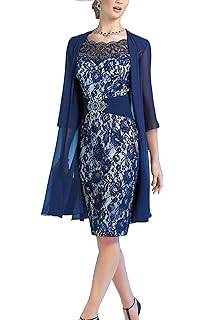 Elegant Navy Blue Mother Bride Dresses With Jacket Lace Knee Length Mother Of The Groom Dress Sequin Plus Size Wedding Guest Gowns Lavender Mother Of The Bride Dresses Great Mother Of The